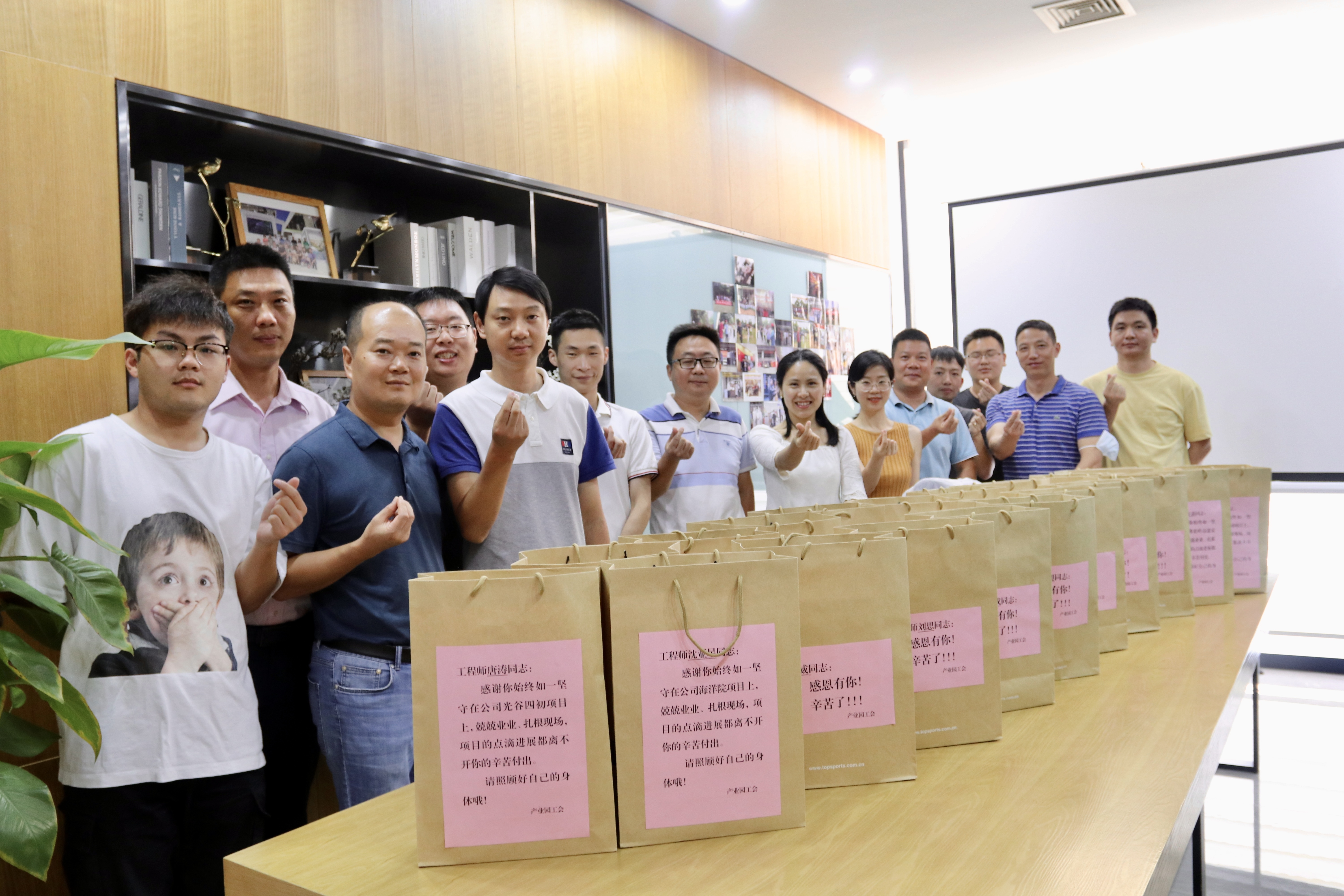 在活動中,公司領導班子聽取了各項目負責人就各項目建設情況作出的介紹,并貼心詢問了他們的工作和生活情況,深深地被他們不畏艱辛、迎難而上的“工程人精神”所感動,對大家不畏酷暑堅守工作崗位的精神給予了肯定,并叮囑大家在高溫天氣下勞作要保重身體,既要高效率的完成工作,也務必要確保身心健康,時刻注意安全。產業園公司總經理王樂強調要合理安排施工時間,避開高溫時段,加強高溫期間生產安全、防中暑及搶救措施的宣傳,注意隱患排查,確保安全生產。