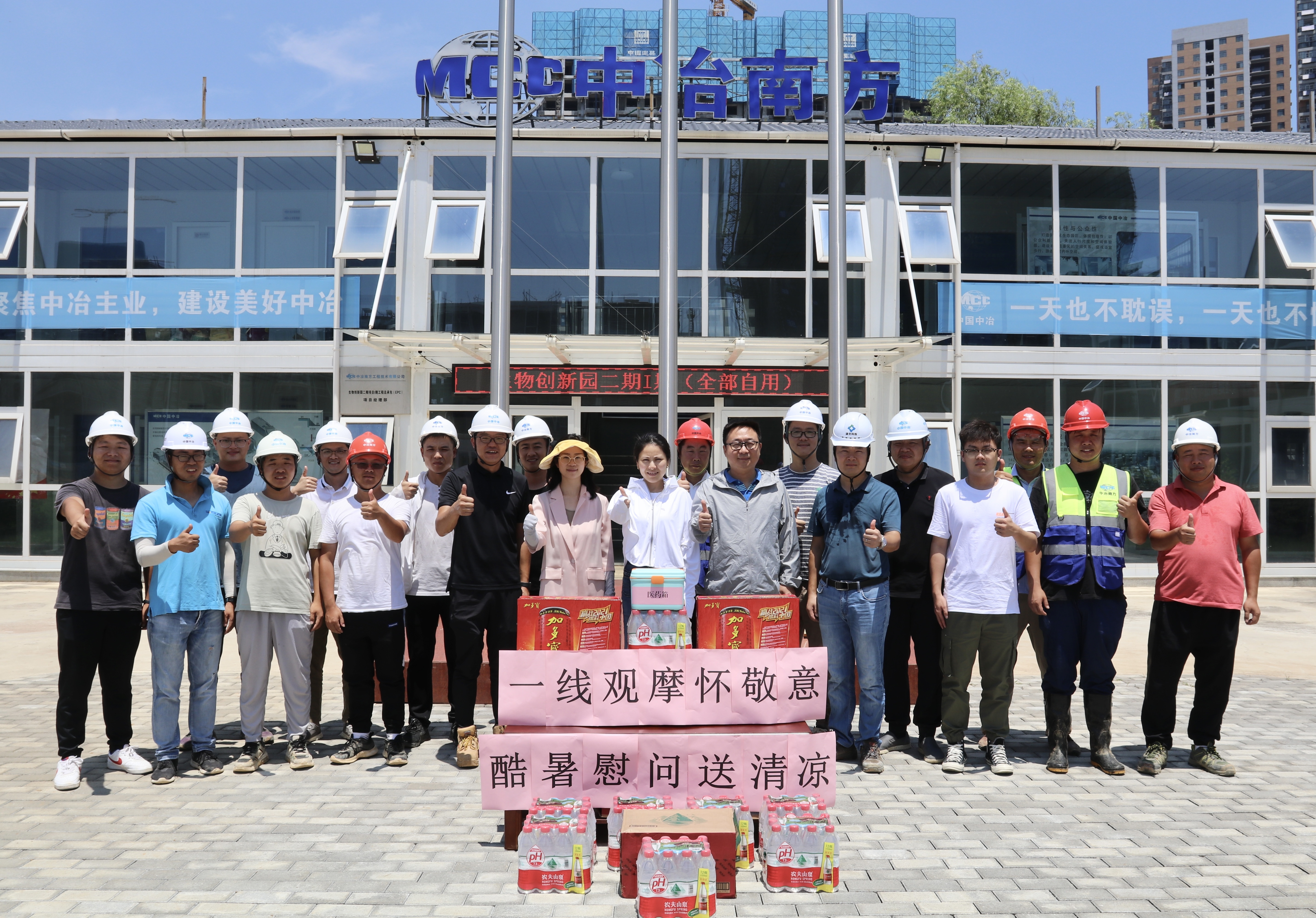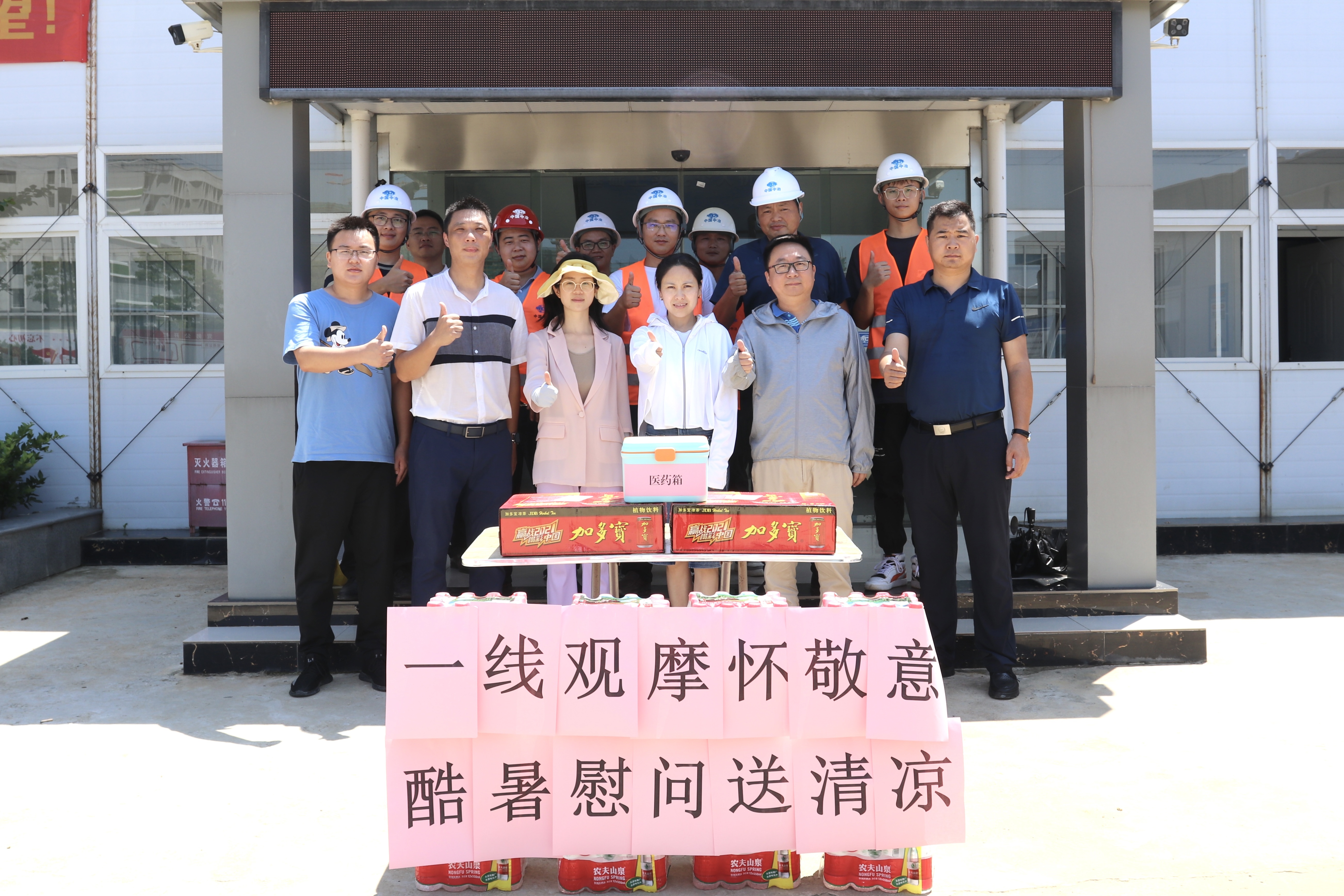 整潔衛生的施工場地、醒目的標語標識牌、文明安全的施工氛圍,都是每一個駐扎在項目現場的員工克服重重困難共同努力出來的結果。一句句關心的話語,一份份慰問的物品,讓一線駐場人員在酷暑中感受到無比清涼,在場的員工們紛紛表示將繼續堅守崗位,盡職盡責,堅持不懈地迎戰高溫、抓進度、保質量、重安全,確保項目建設有序推進。