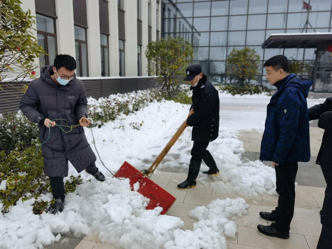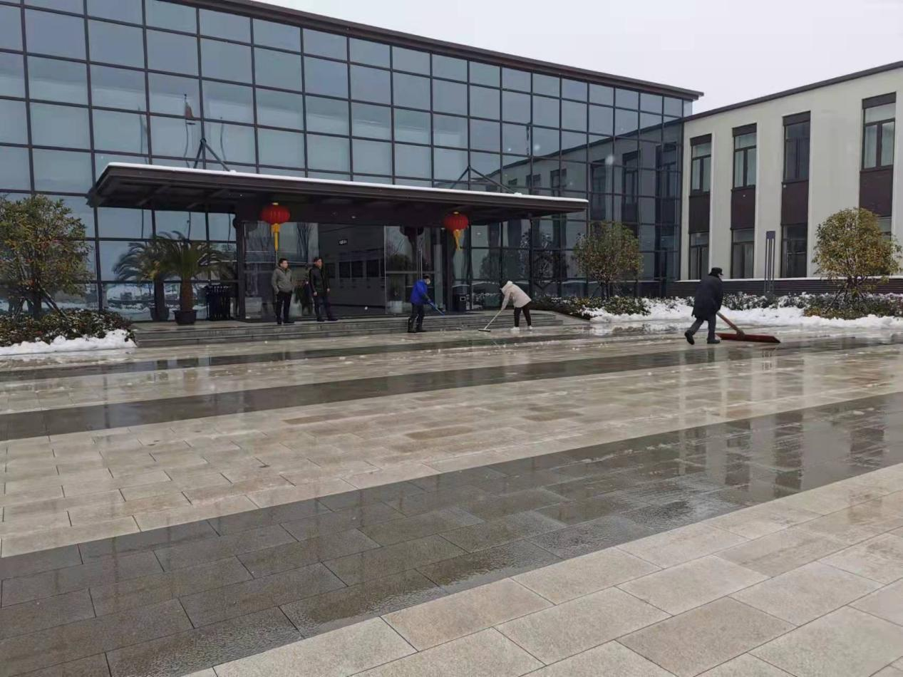 會后,領導班子成員秉承干在實處、走在前列的精神,帶領各部門工作人員在科學島園區開展義務勞動,清除路面積雪,確保道路交通順暢、員工出行安全。道路寒風凜冽,路面積雪厚重,尤其是隨著氣溫驟降,增加了掃雪除冰的難度。但在領導們的帶領下,干部職工們個個干勁十足,掃帚、鐵鍬、鐵鏟齊上陣,揮鍬、破冰、鏟雪、清地……經過連續數小時的奮戰,道路、綠化帶等園區內的堅冰積雪被逐漸清掃干凈,確保了道路的暢通和安全,切實保障科學島展廳工作區進入接待狀態。
