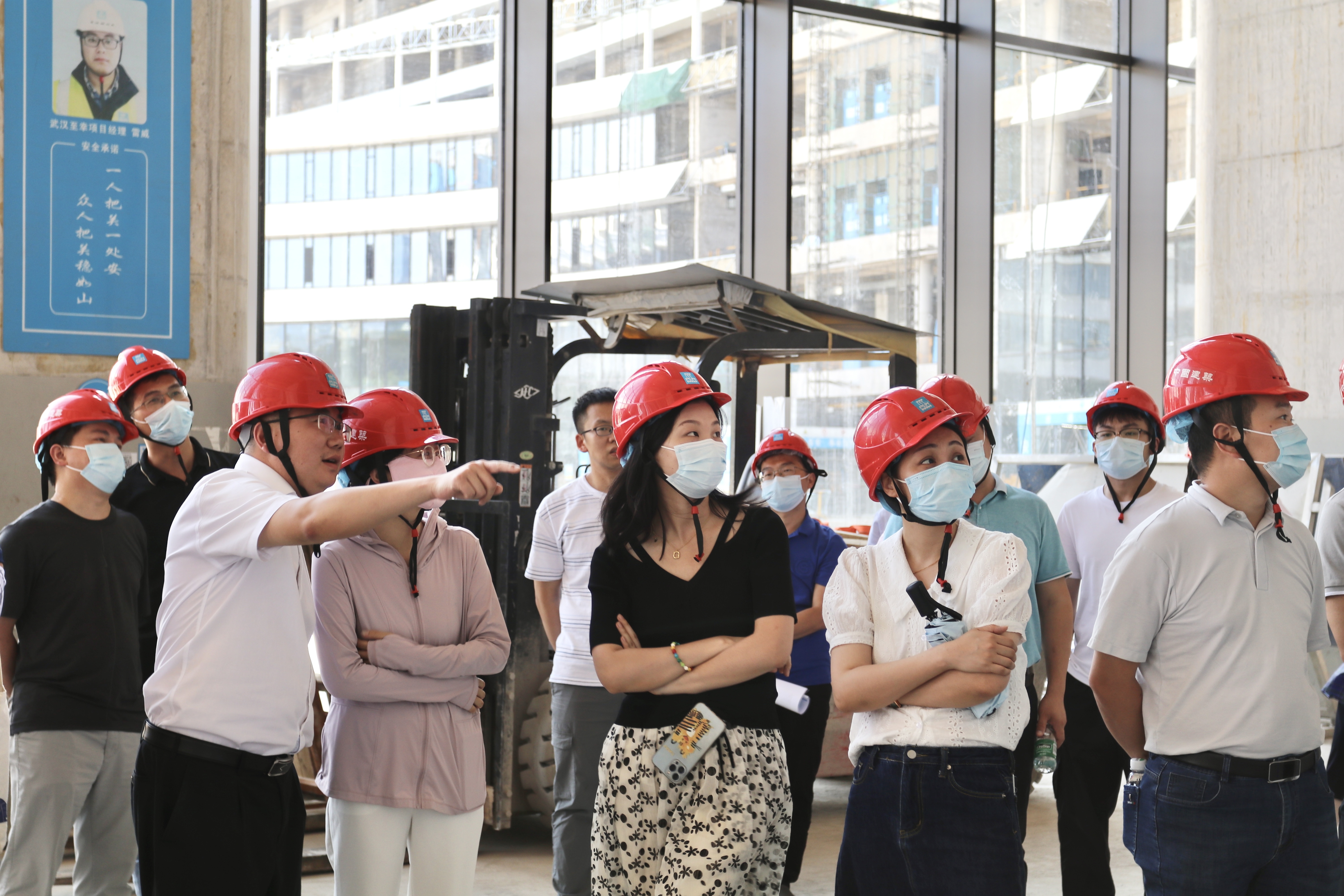深入項目現場,大家實地參觀學習了塔樓的新媒體傳播中心以及裙樓新媒體制作中心,了解了該項目鋼骨柱、勁性桁架、懸挑桁架、屋面桁架等復雜的鋼結構設計以及超大跨度桁架、大懸挑疊層桁架、超高模板架體以及滿足傳媒特殊要求的浮筑地面、重墻等行業領先工藝,還有優秀的室內裝飾、綠化等理念。